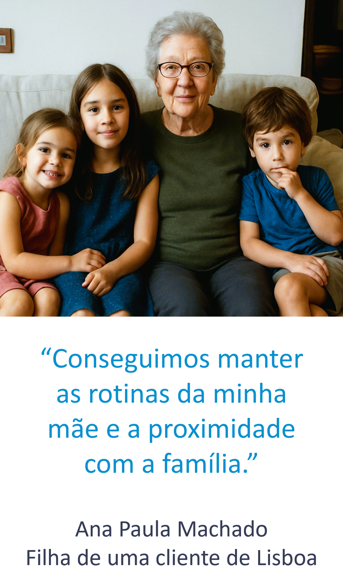 A nossa missão é potenciar a qualidade de vida da população idosa, bem como das pessoas com necessidade de cuidados especializados, sempre no conforto do seu lar.